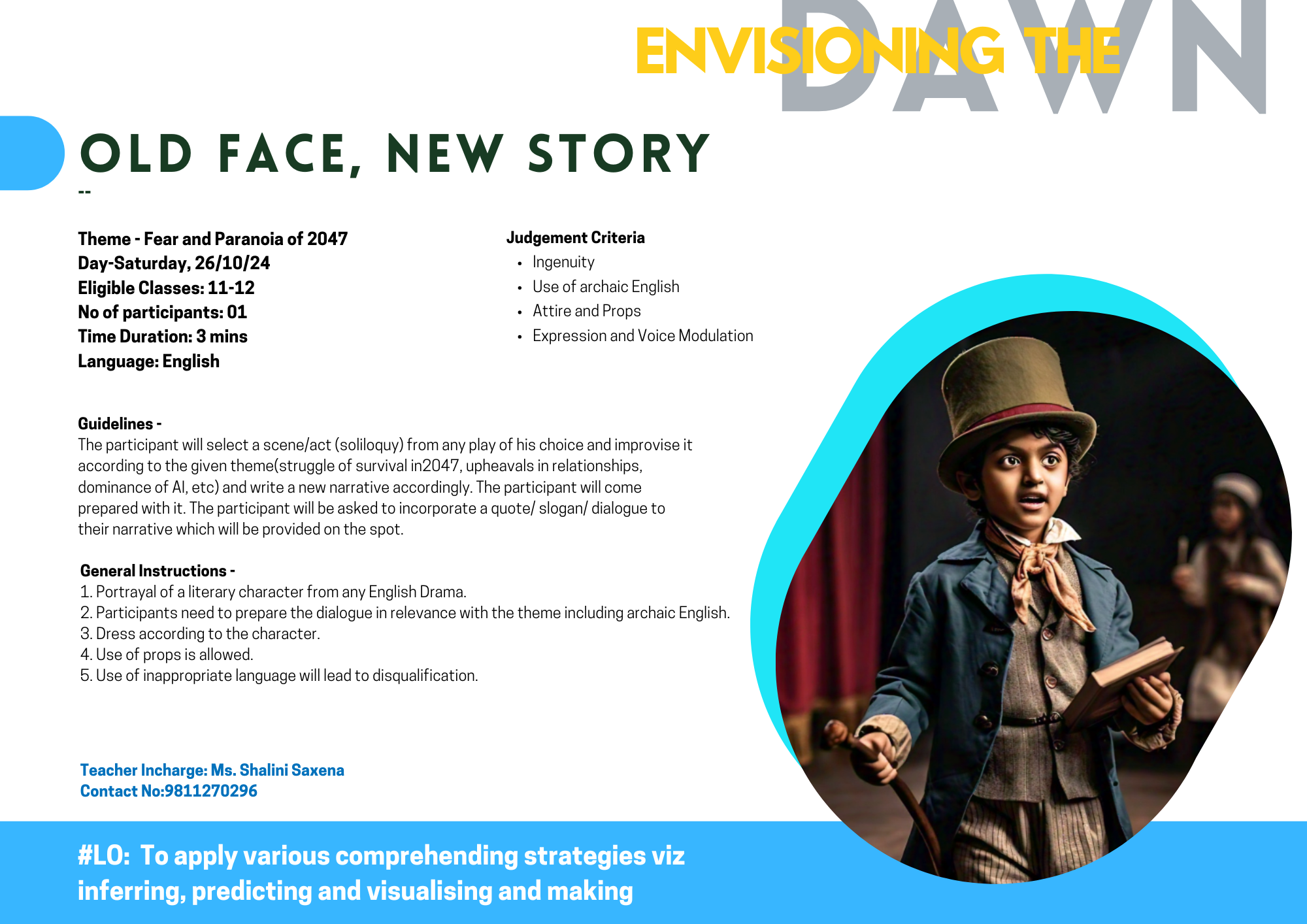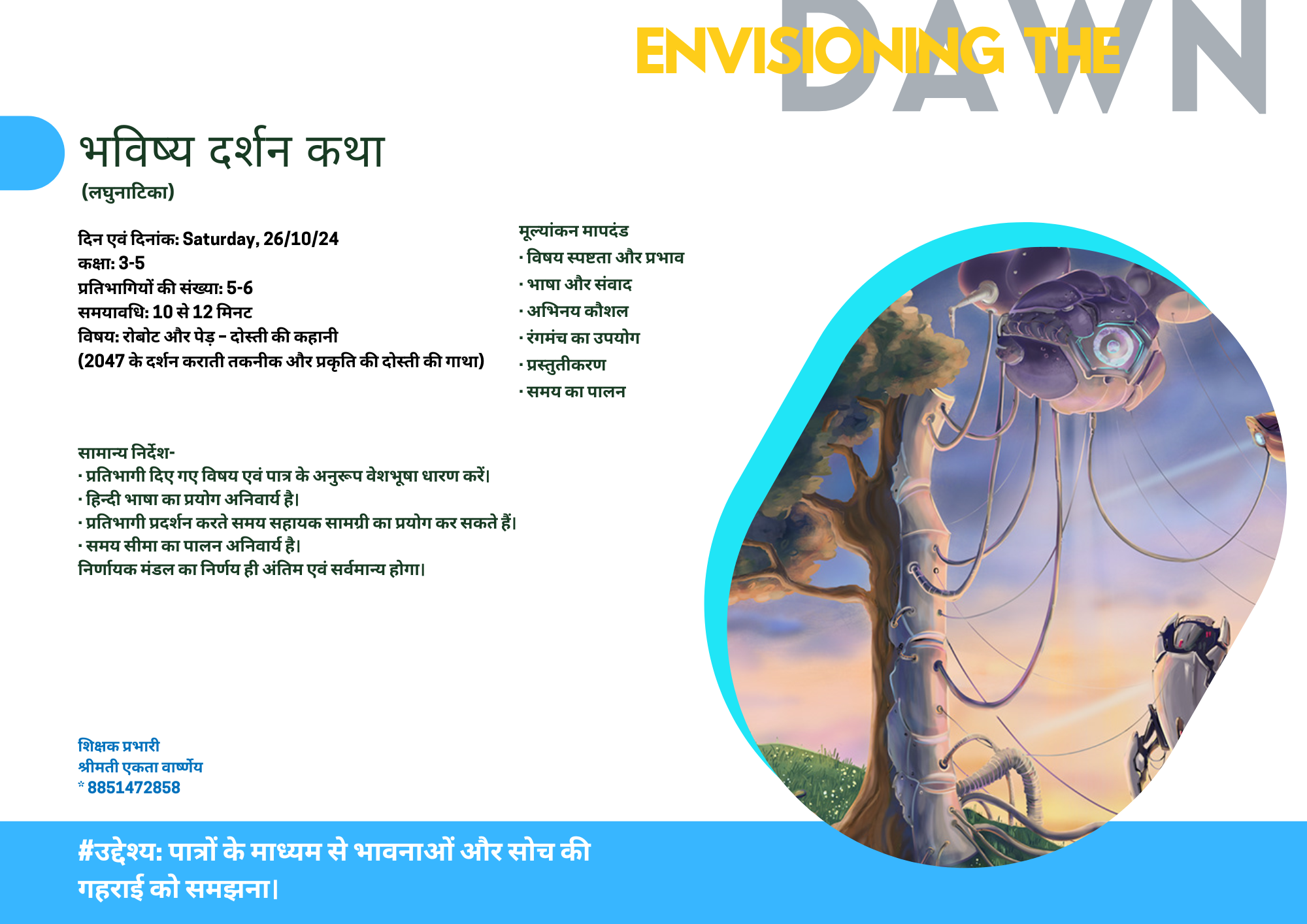 भविष्य दर्शन कथा में प्रतिभागी विषय और पात्र के अनुसार वेशभूषा धारण करेंगे।