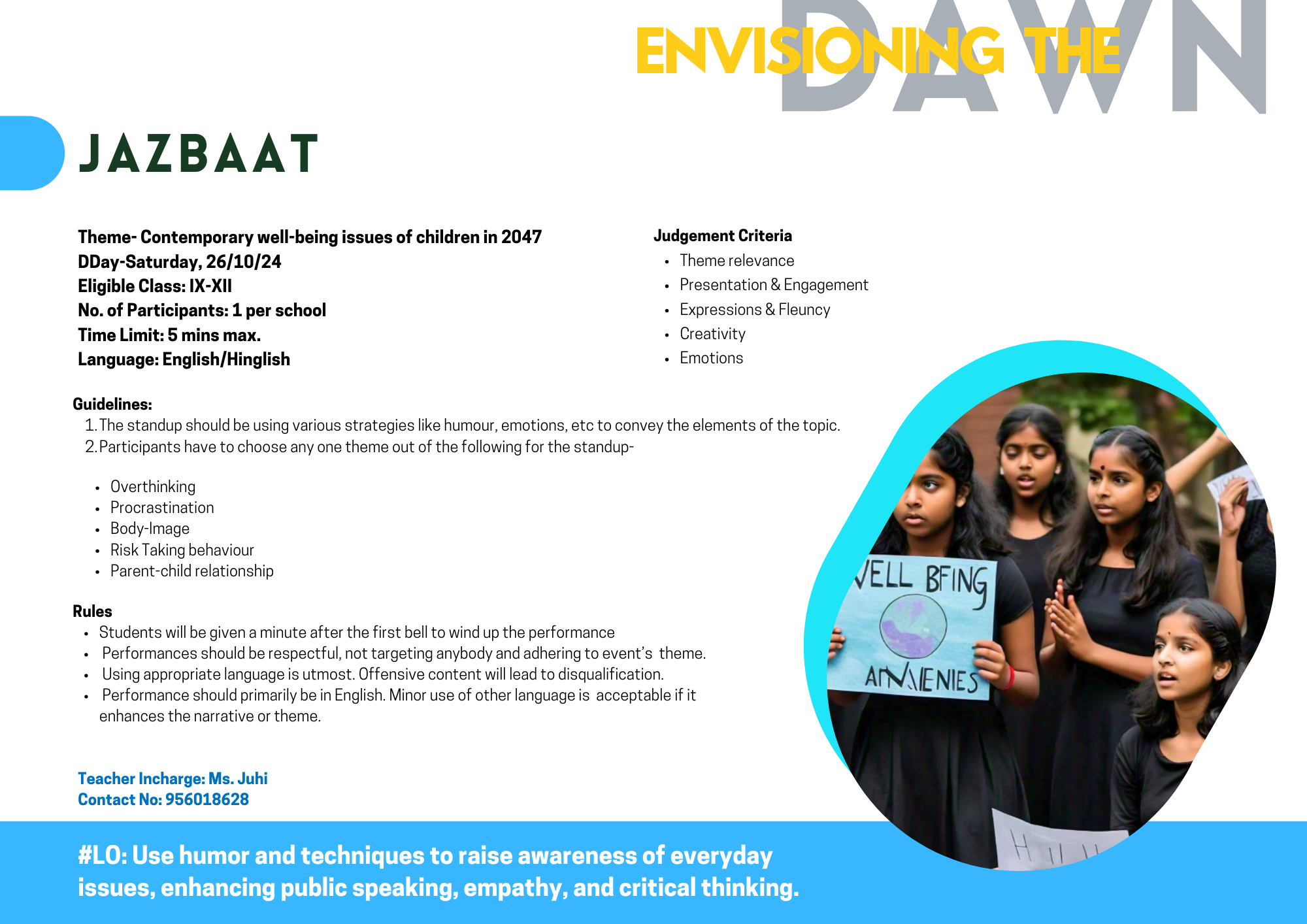 Explore the pressing well-being challenges children may face in 2047, addressing psychological concerns through a standup.