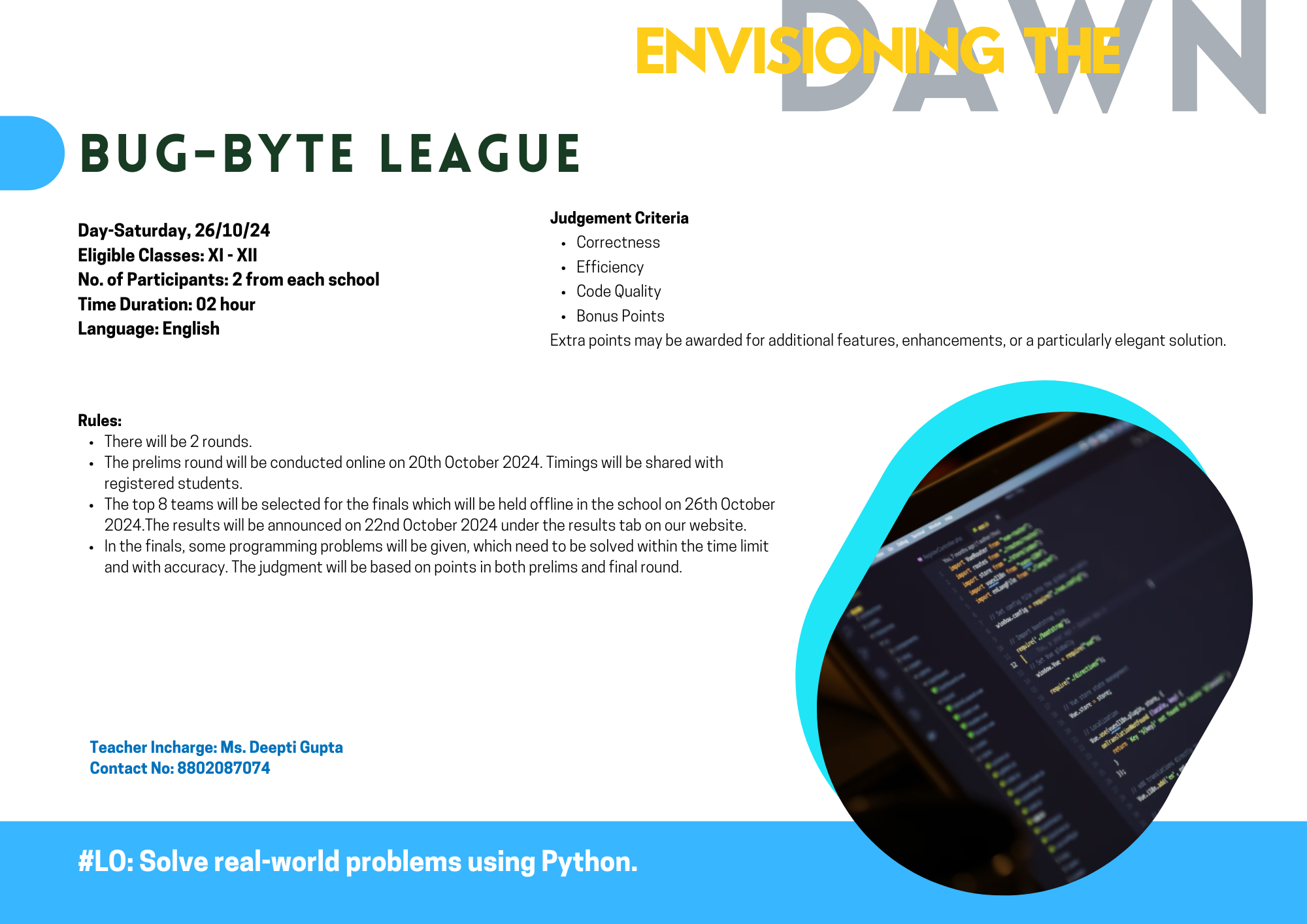Solve Python Programming Problems efficiently and quickly to advance from the preliminary round to the finals.